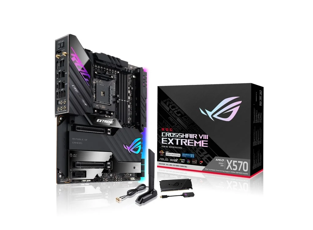 مانند دیگر مادربردهای X570، مادربرد پرچمدار ایسوس نیز دارای 4 اسلات برای قرارگیری رمهای DDR4 است و می توانید تا 128 گیگابایت رم بر روی این مادربرد قرار دهید. در حال حاضر ایسوس حداکثر فرکانس رم قابل پشتیبانی توسط این مادربرد را اعلام نکرده اما انتظار میرود ROG Crosshair VIII Extreme رمهایی با حداکثر فرکانس 5100 مگاهرتز را در زمان همراه شدن با پردازندههای رایزن سری 5000 پشتیبانی کند.همچنین Crosshair VIII Extreme مجهز به شش پورت ساتا و پنج اسلات M.2 PCIe 4.0 x4 میباشد که البته برای استفاده از آن باید سیستم شما به رایزن سری 5000 یا 3000 باشد، در غیر این صورت اسلاتها در حالت PCIe 3.0 x4 فعالیت خواهند کرد. سه مورد از این اسلاتها مستقیما به پردازنده متصلند و دو اسلات دیگر به سمت چیپست X570 هدایت شدهاند.